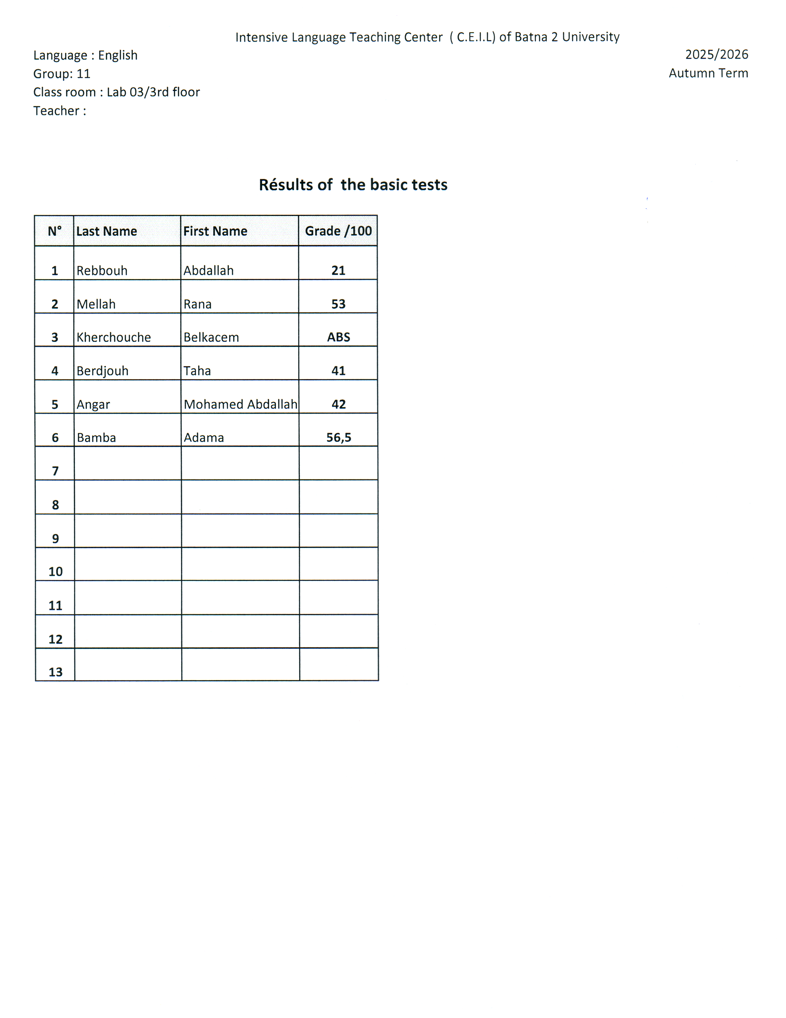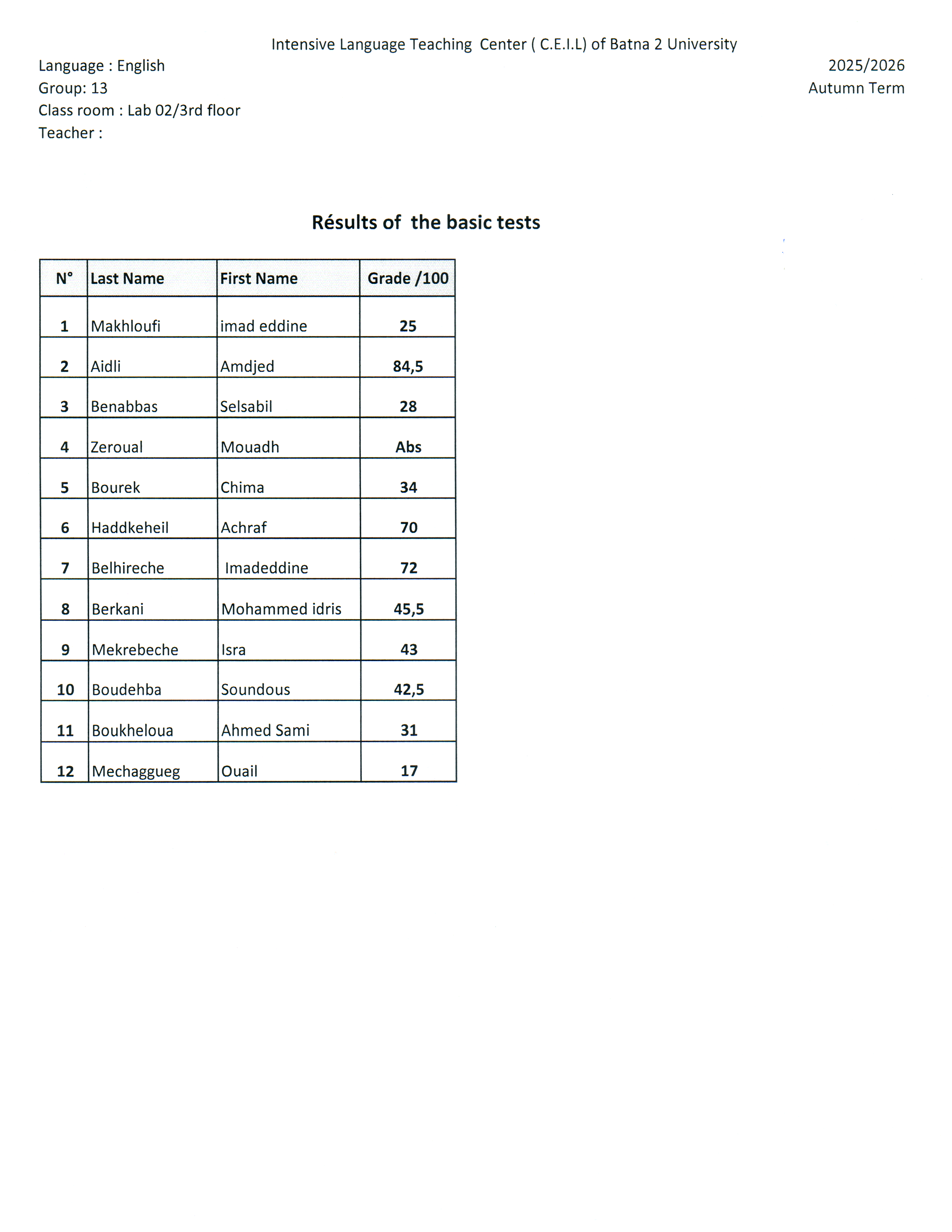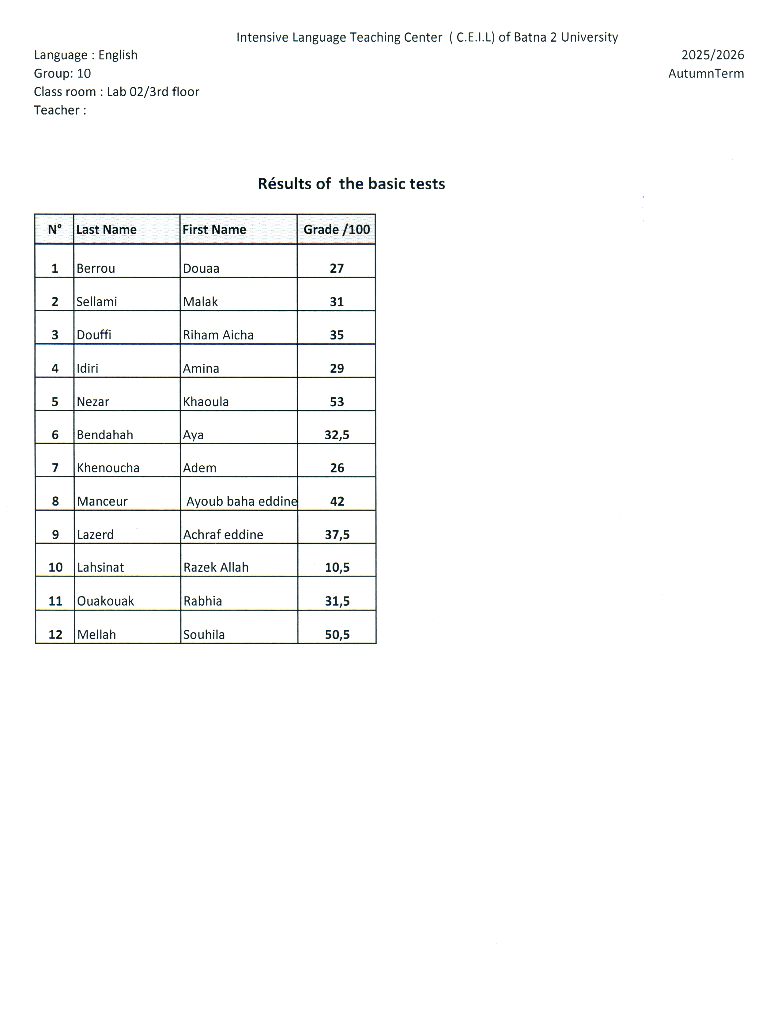 Résultats du test de base des apprenants inscrits Mardi Laisser un commentaire / Par ceil ceil / 10 novembre 2025 Spread the love Spread the love