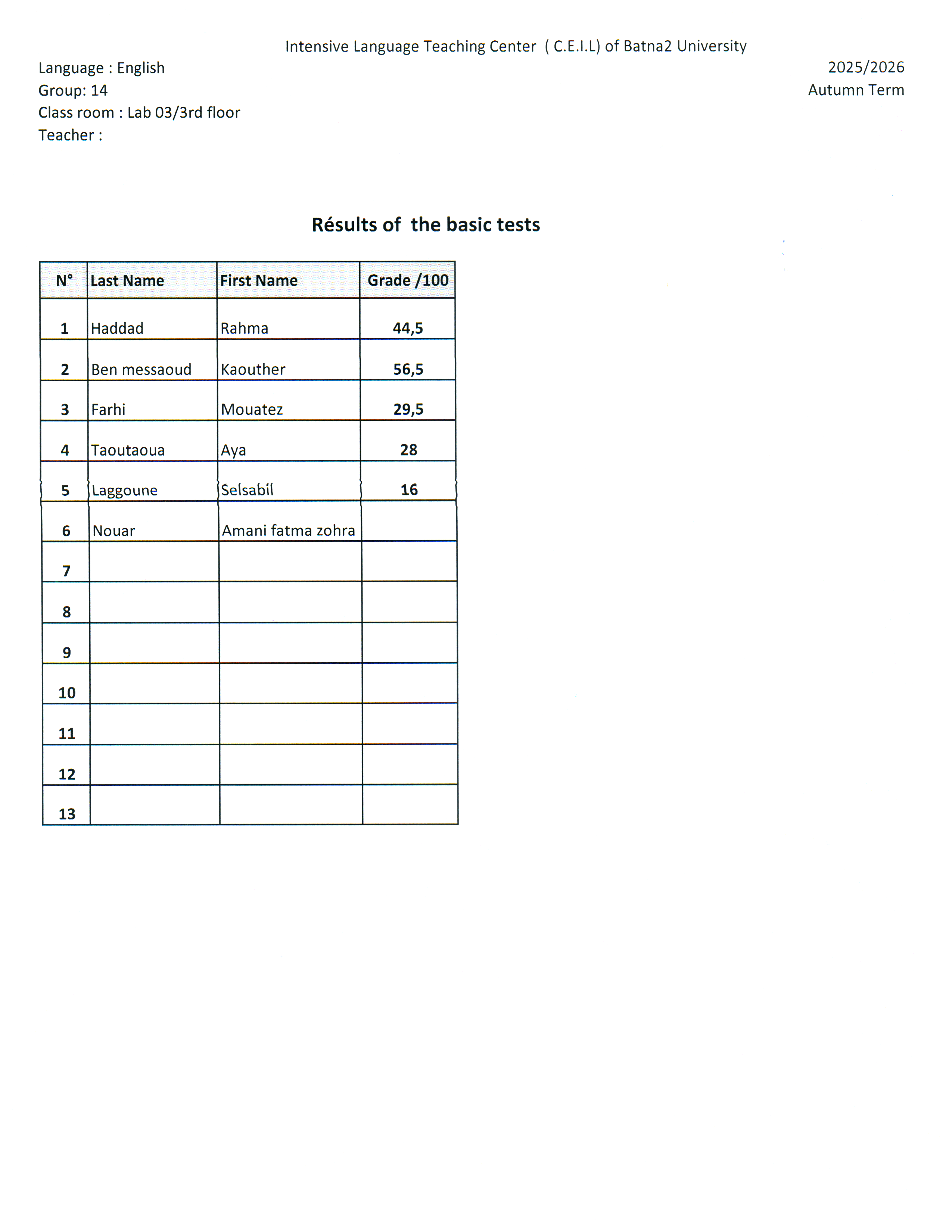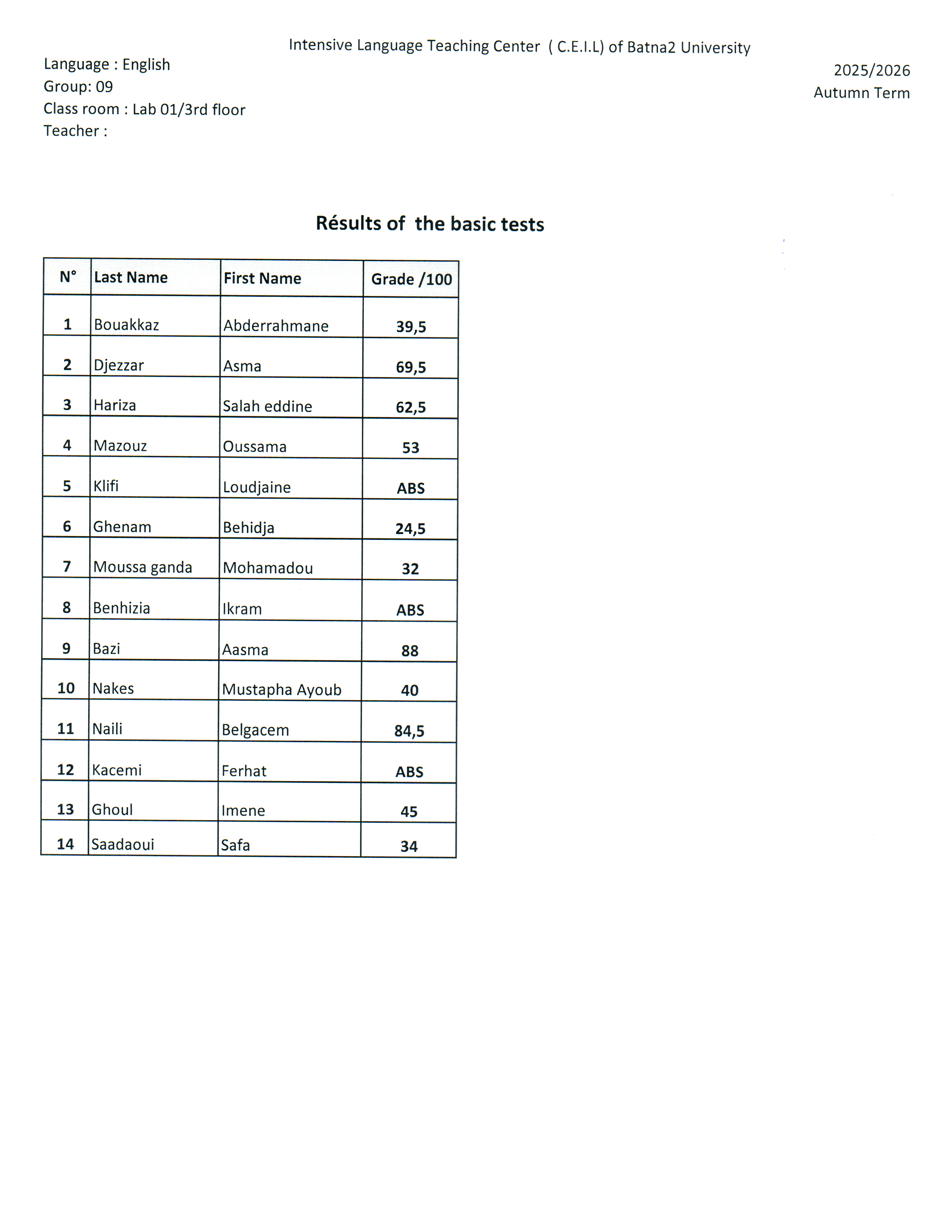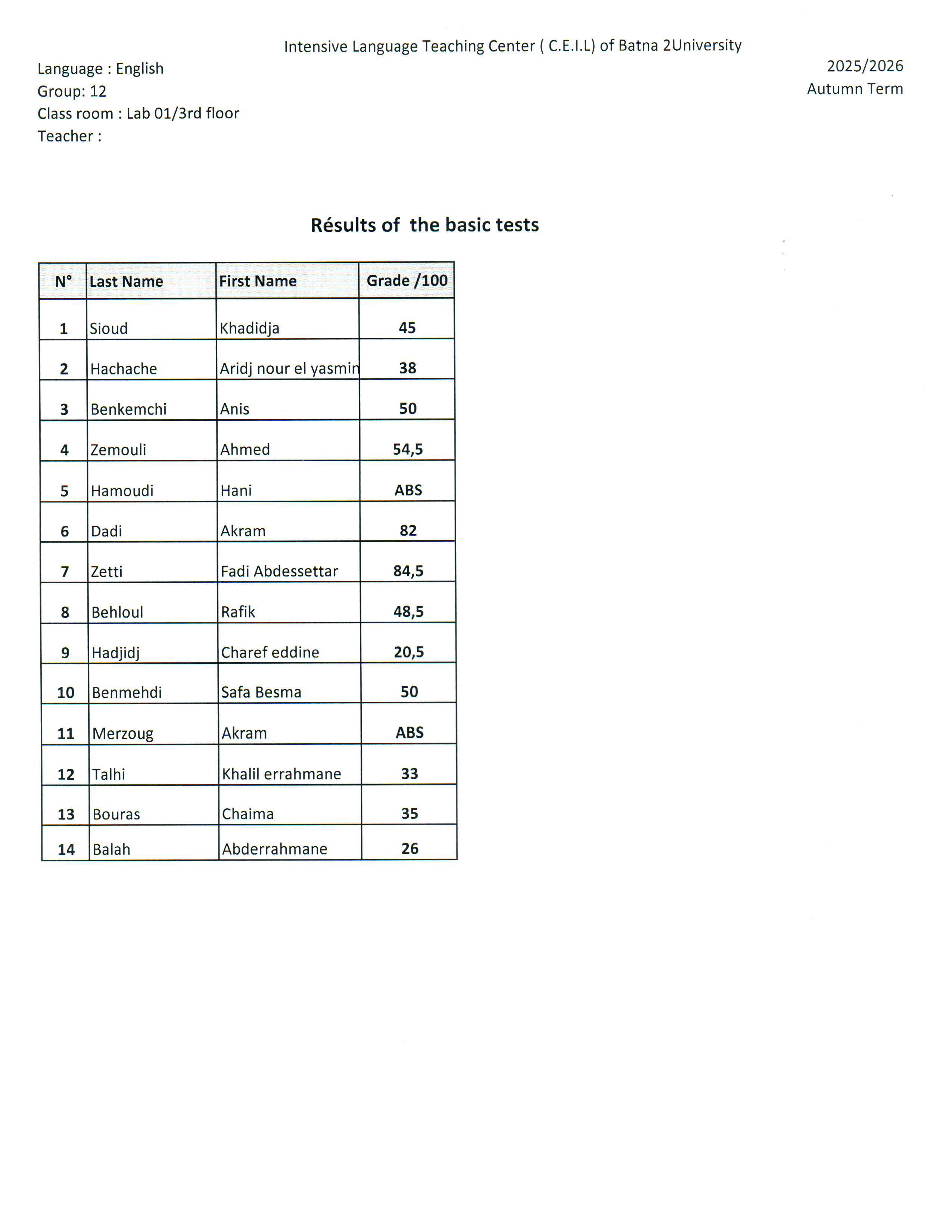 Résultats du test de base des apprenants inscrits Mardi Laisser un commentaire / Par ceil ceil / 10 novembre 2025 Spread the love Spread the love