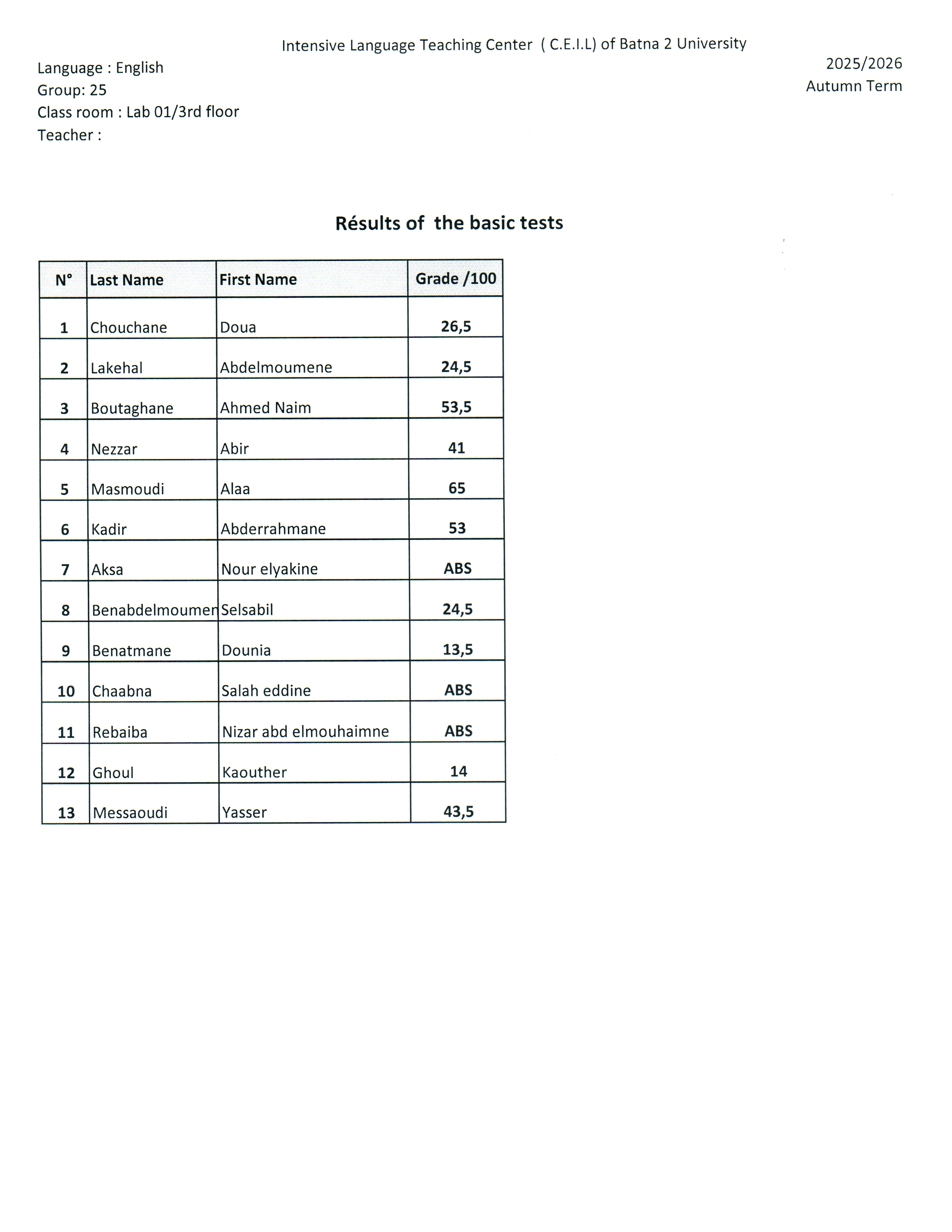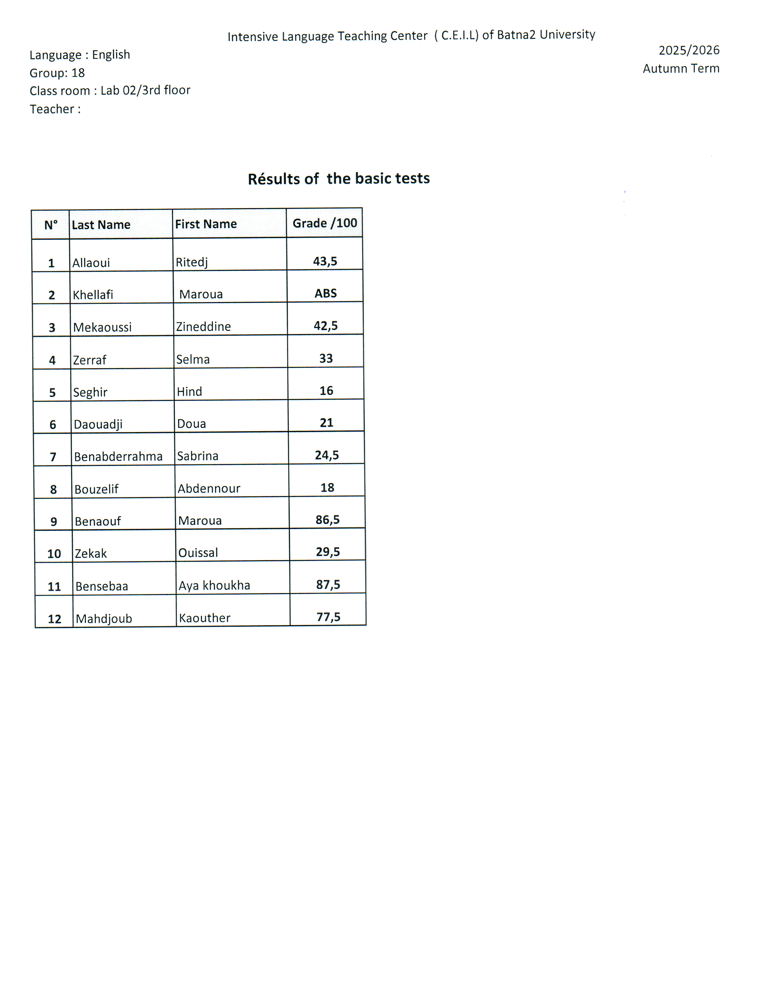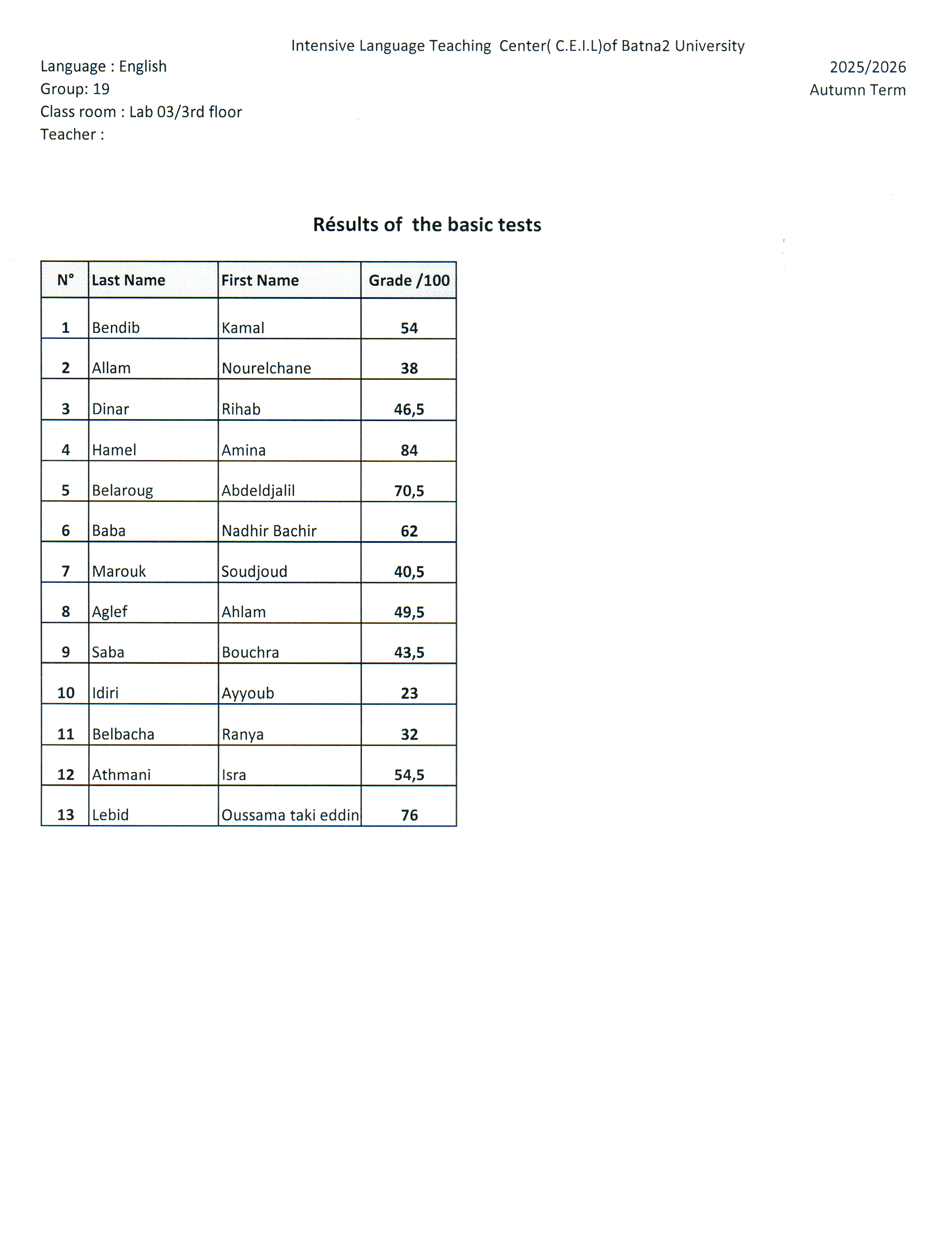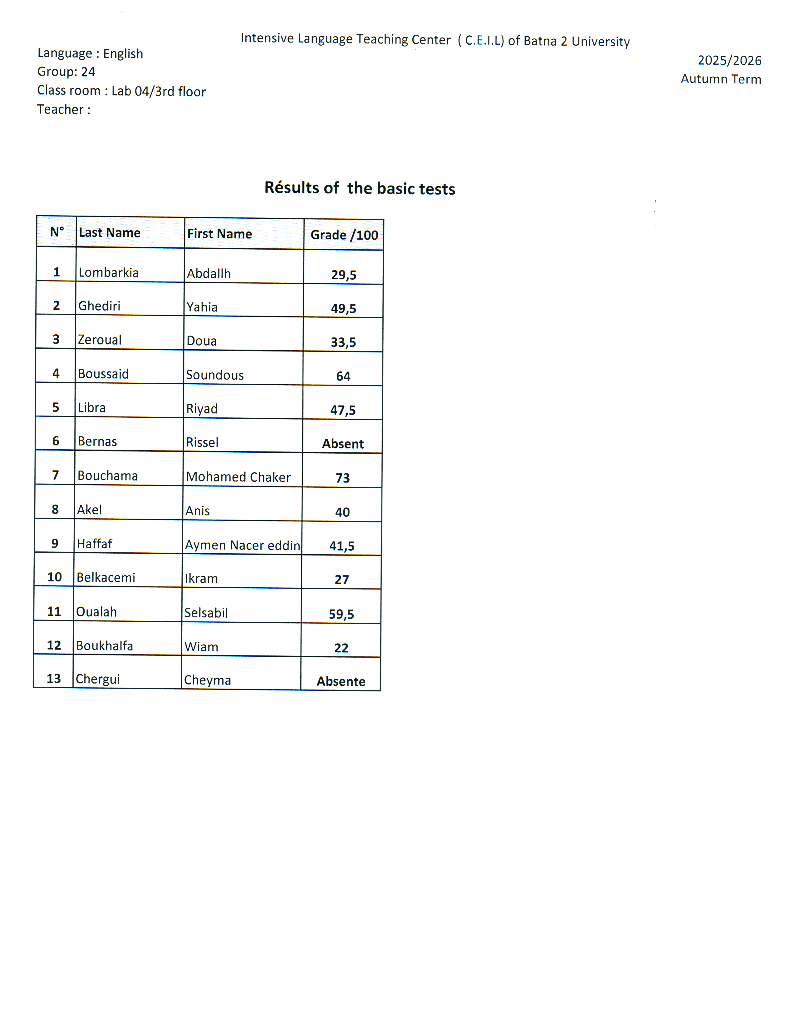 Résultats du test de base Apprenants inscrits Jeudi Laisser un commentaire / Par ceil ceil / 12 novembre 2025 Spread the love Spread the love