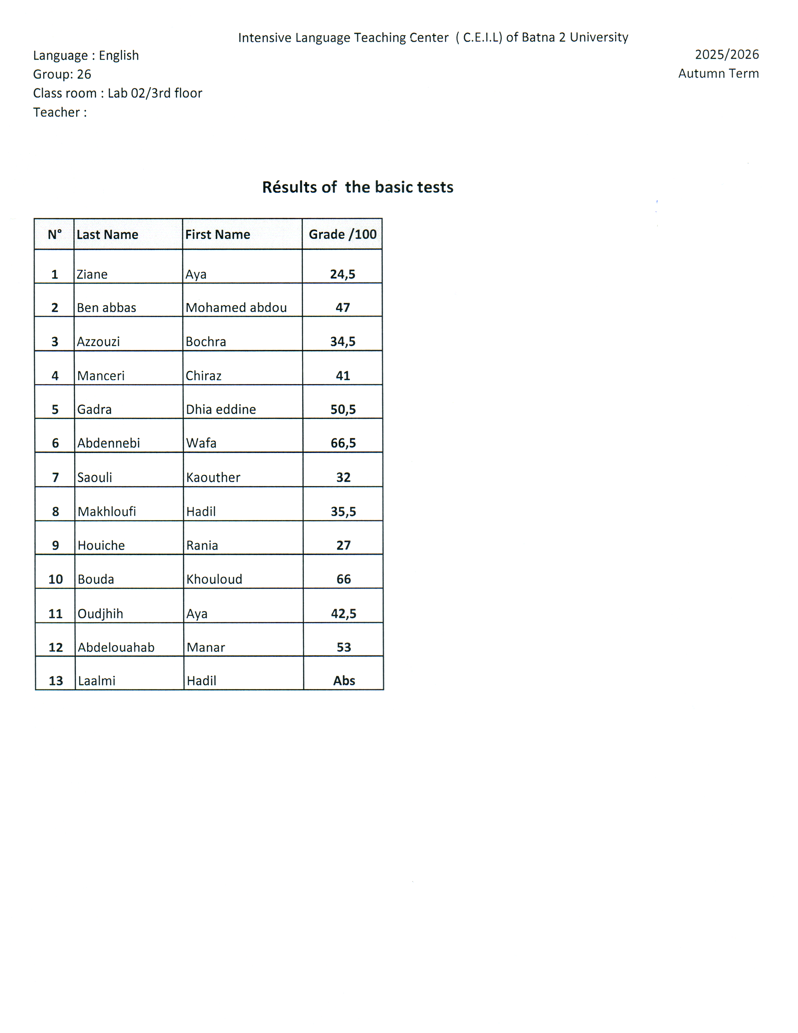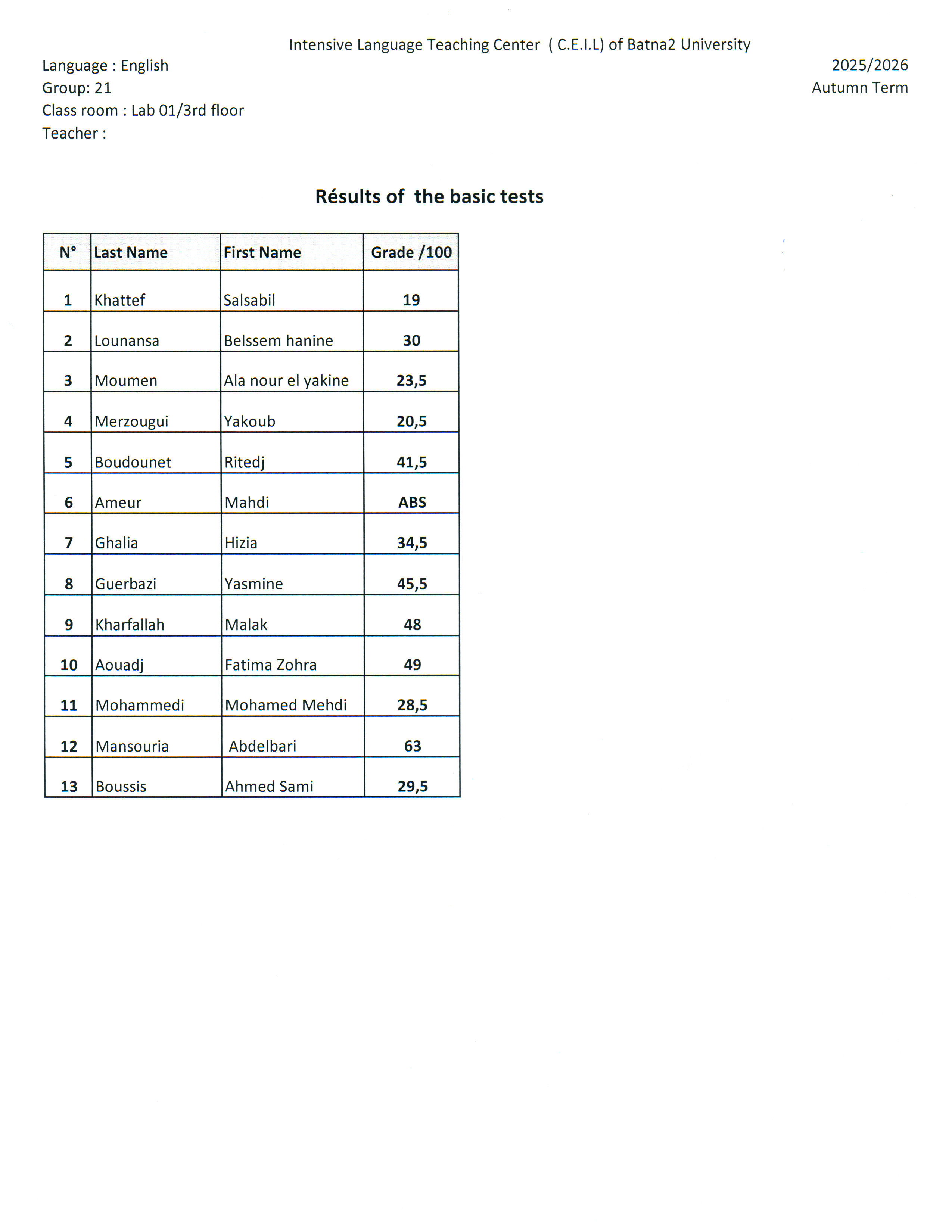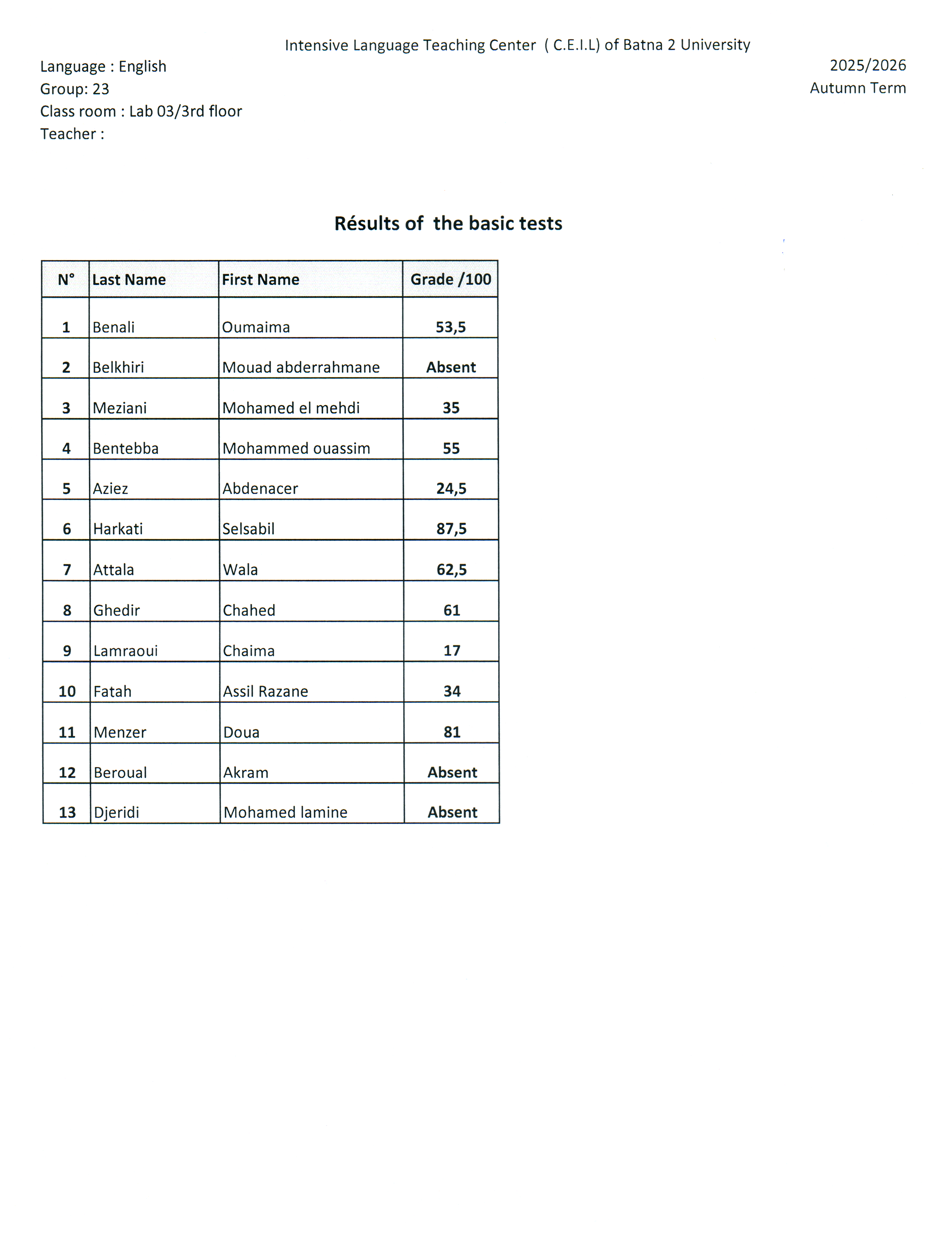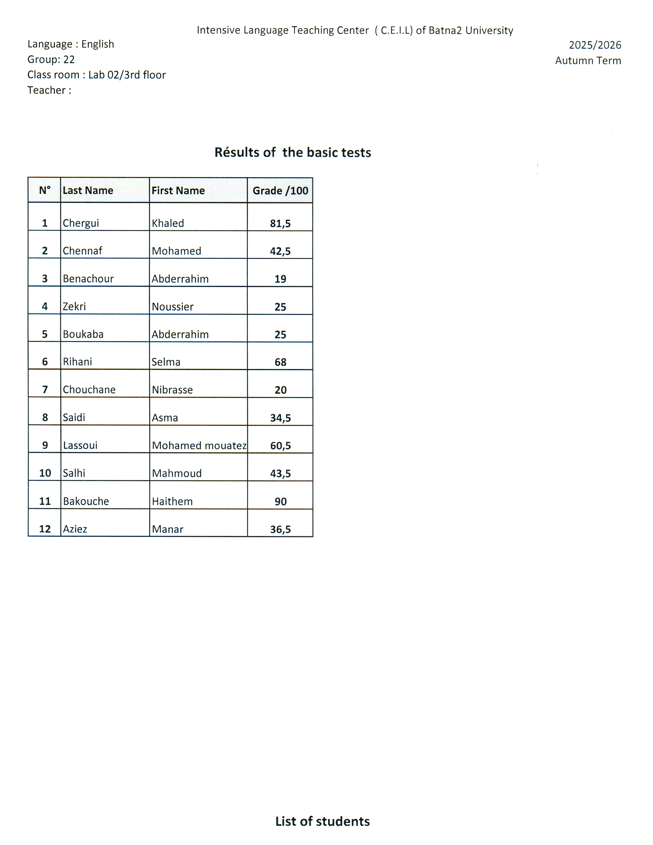 Résultats du test de base Apprenants inscrits Jeudi Laisser un commentaire / Par ceil ceil / 12 novembre 2025 Spread the love Spread the love