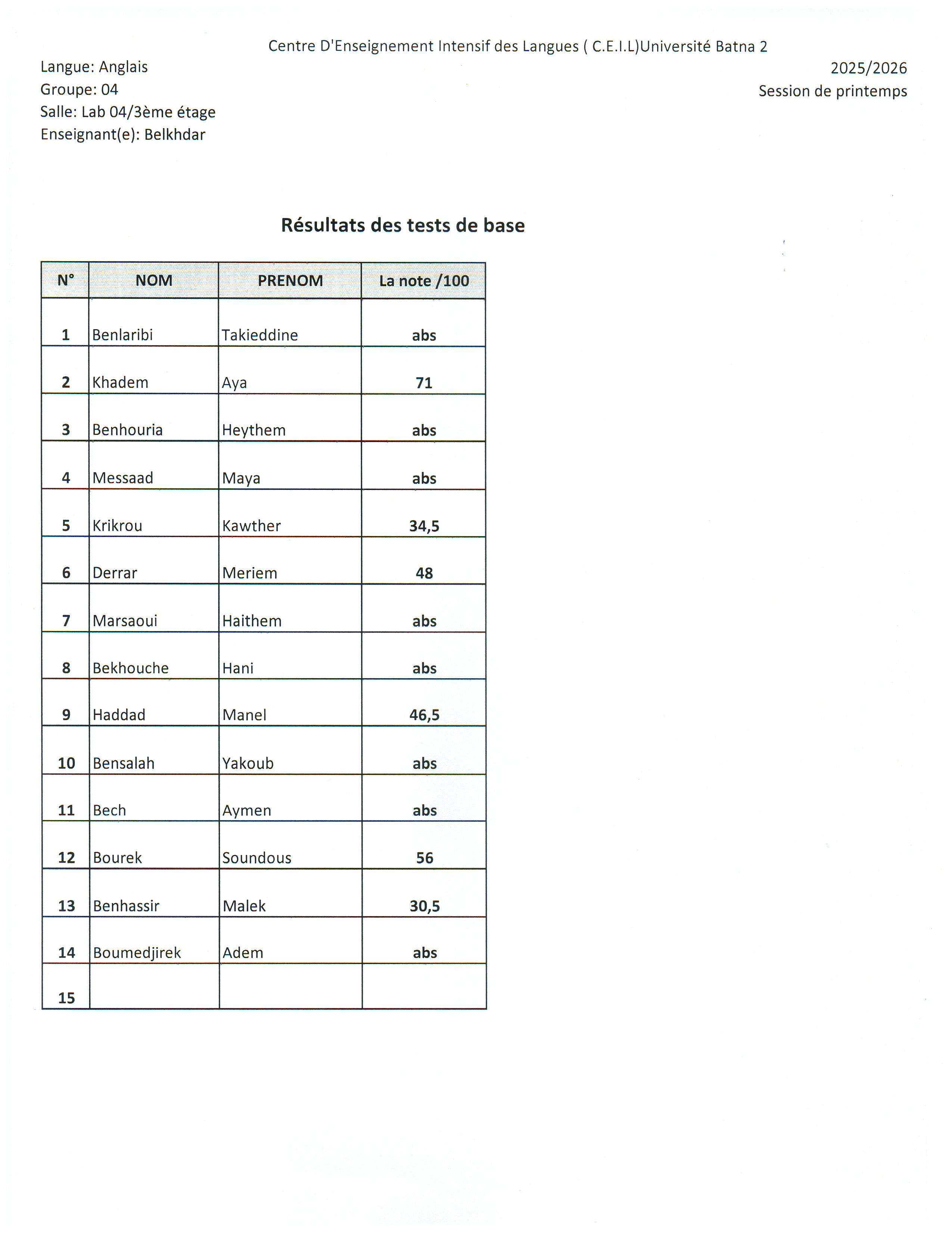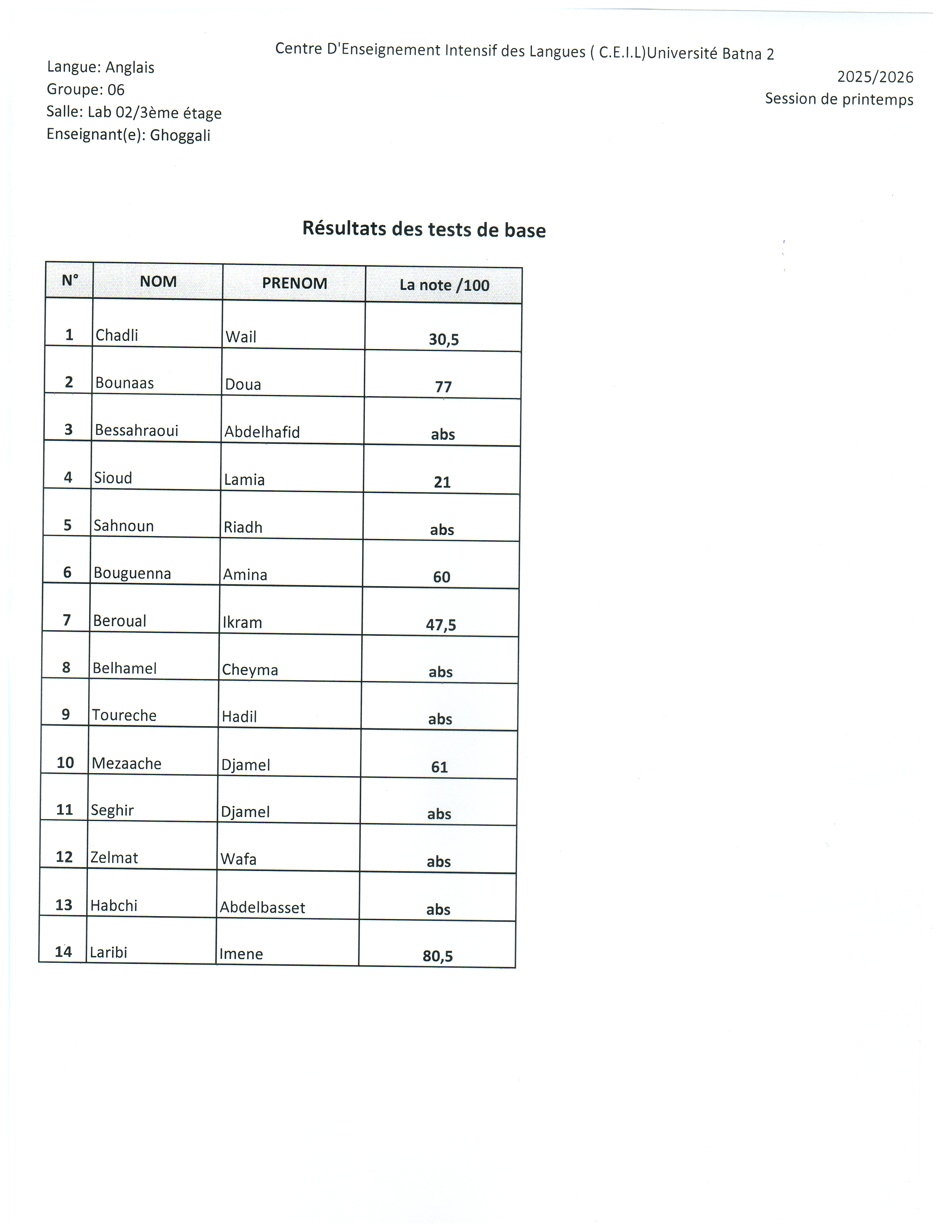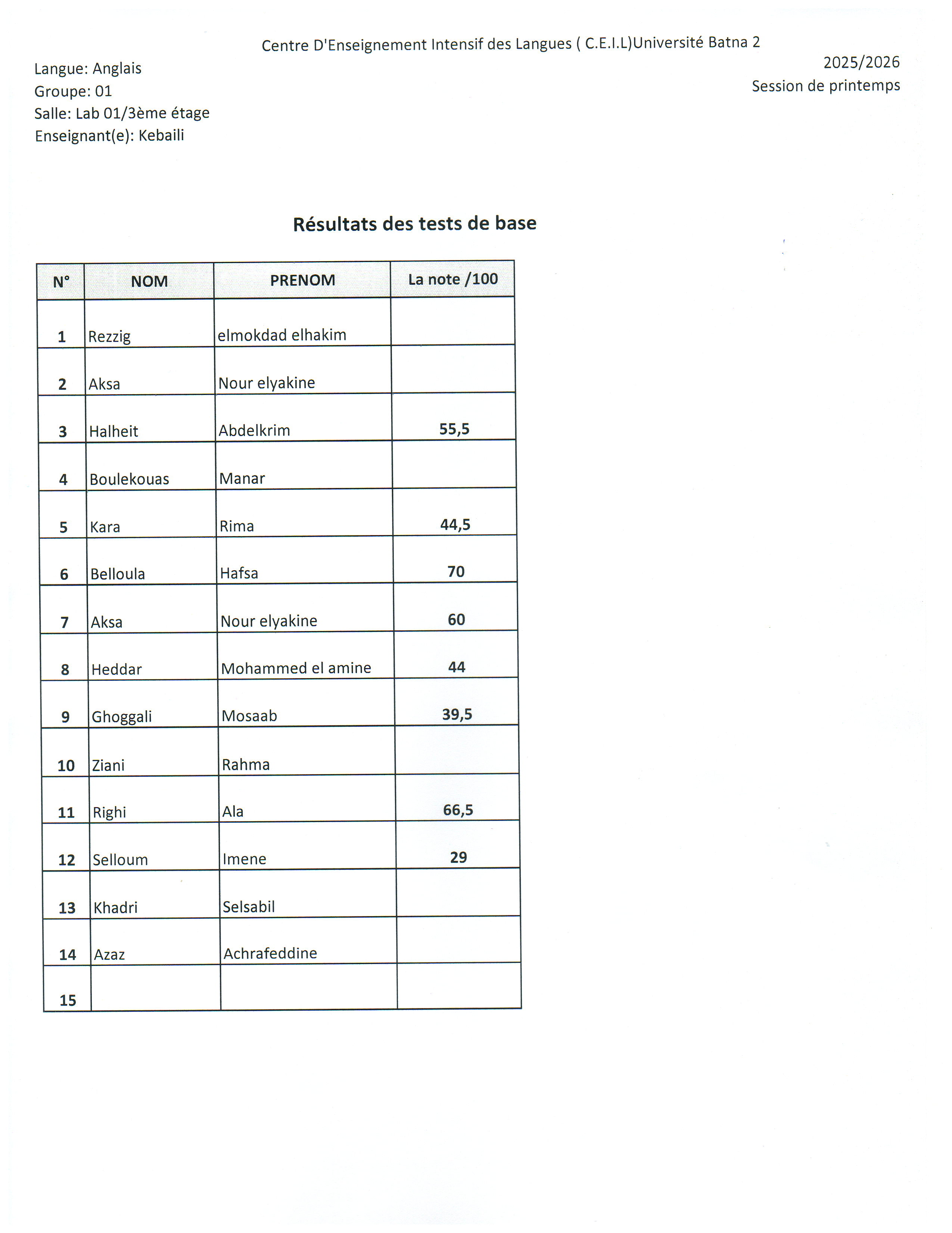 Résultats du test de base Session Printemps 2026Par ceil ceil / 15 mars 2026 Spread the love Spread the love