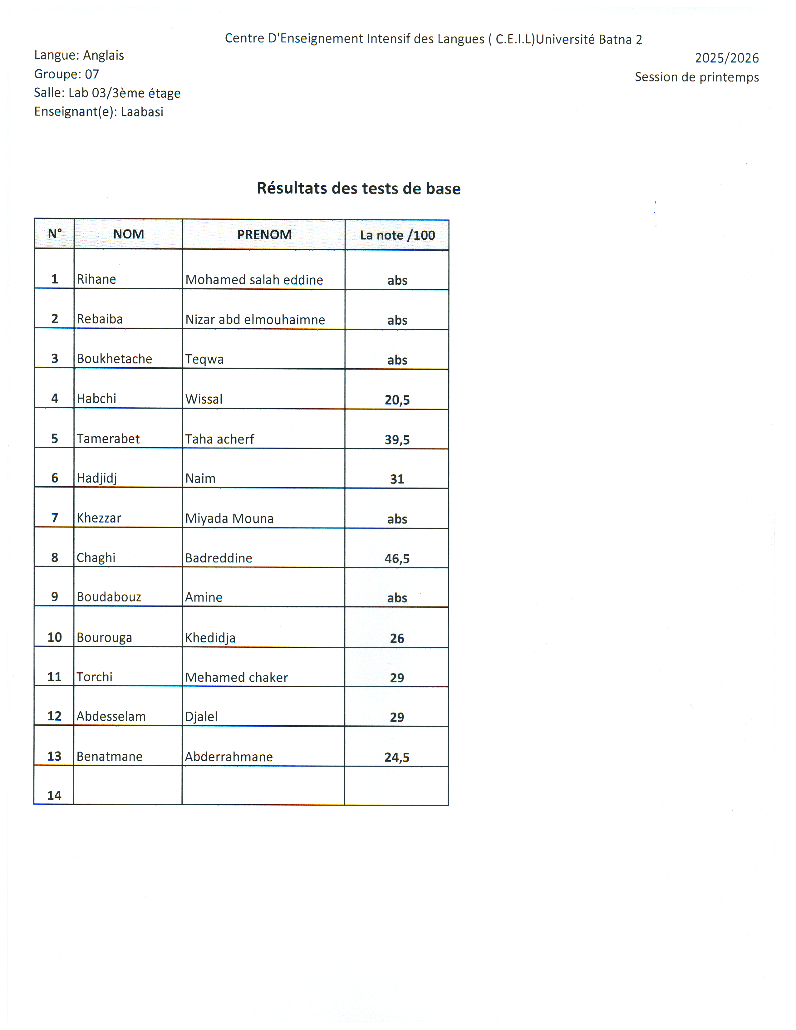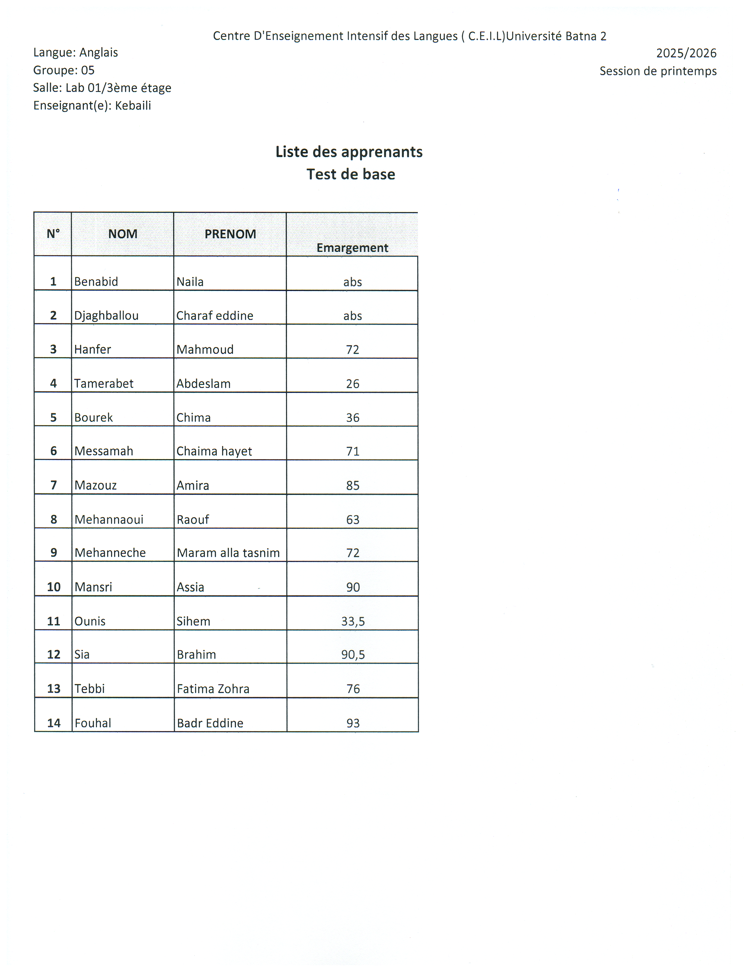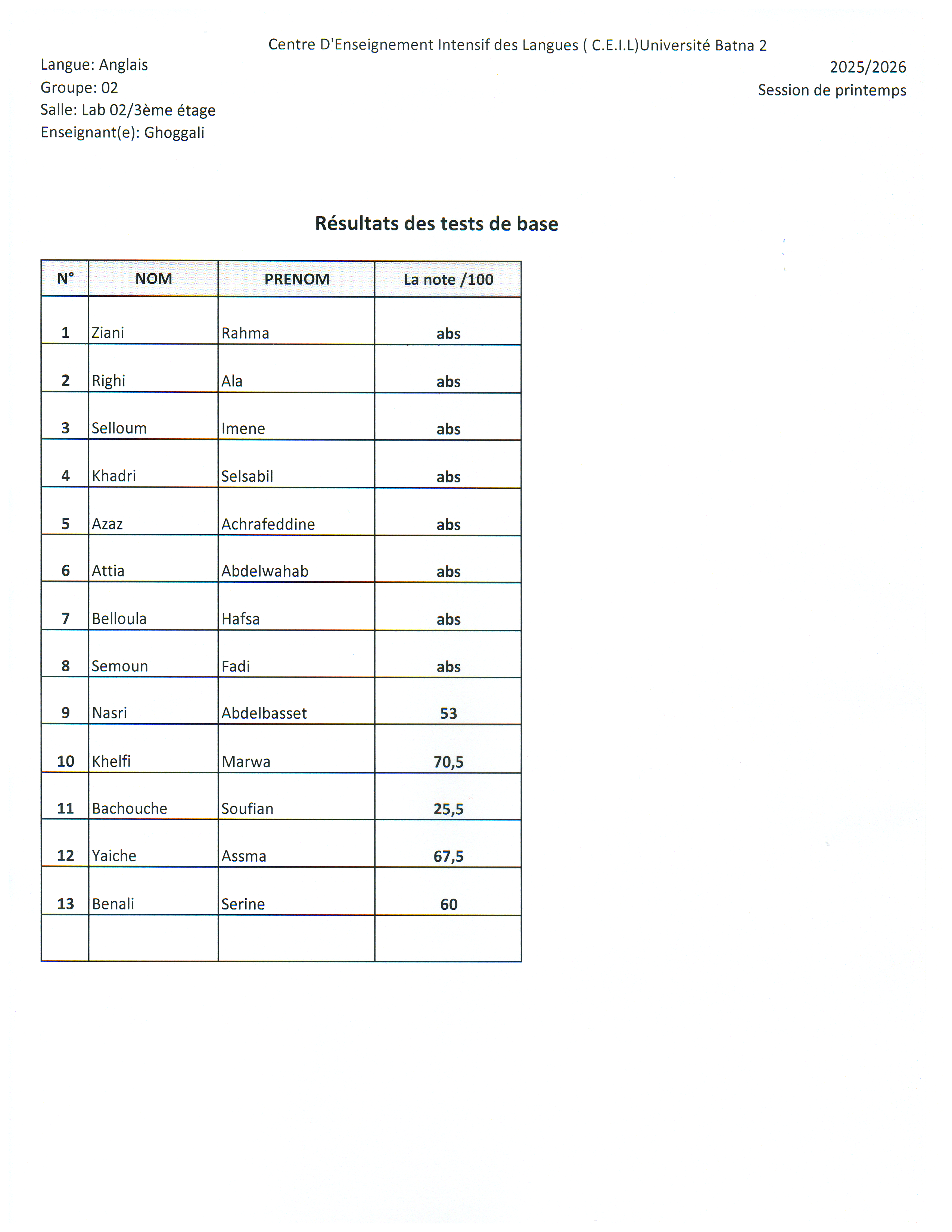 Résultats du test de base Session Printemps 2026Par ceil ceil / 15 mars 2026 Spread the love Spread the love